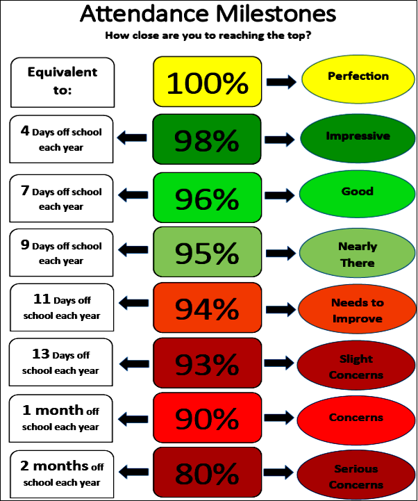 We love school, we love learning and we want your child to do the best that they can. Amazing things happen when they attend school every day and that is what we want every parent and child to strive for. Here's the legal bit: